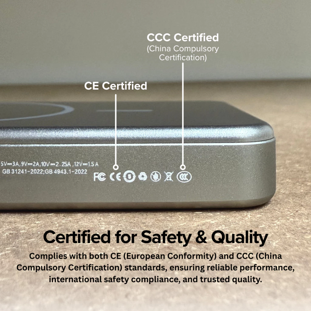 What makes this better? Itโ€™s 3C/CCC certified, specially designed for Singaporeโ€™s power environment, giving you safer and more reliable charging compared to cheap unverified alternatives. Youโ€™re not just buying power, youโ€™re buying peace of mind. Slim, stylish, and easy to carry, it fits perfectly into your pocket, handbag, or travel pouch.