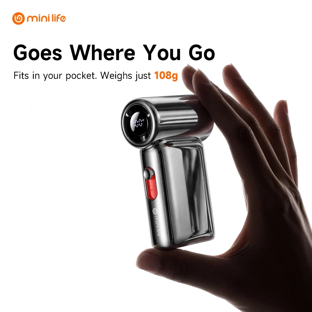 Unlike ordinary handheld fans, this one features a sleek electroplated premium body that looks stylish and feels luxurious in your hand. Lightweight at only 108g, it’s comfortable to carry all day, while the digital display lets you easily monitor speed levels and battery usage for added convenience.