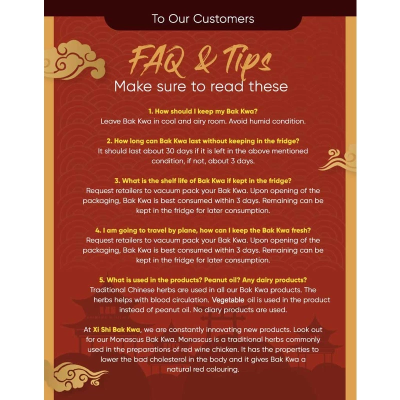 If you’re looking for a festive classic that arrives fresh, flavourful, and beautifully packaged, XiShi Bakkwa 500G Vacuum Pack is the perfect choice. 🍗✨ Available in both Original Mince Pork and Sliced Pork varieties, each pack contains 500g of deliciously smoky, savoury bakkwa with about 10 to 12 pieces inside — all sealed to lock in freshness.